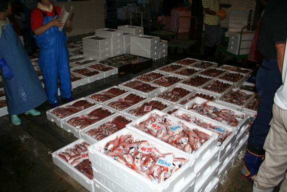 大田では当たり前の一日漁・晩市も、 その鮮度や品質は全国的に高い評価を受けています。岡富さんは「 おおだ一日漁推進協同組合」を設立し、 積極的に一日漁のブランド化を図っています。 インターネット販売にも積極的。 まさしく現在各地で求められている地域資源のブランド化ですね。 非常に参考になります。