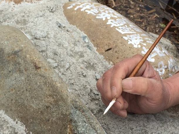 全ての支援者様が対象となるリターン「魚道の石に芳名」を実施いたしました。場所は先月に改修工事を行った静間川・和田堰の魚道。今回は、地元で石にペイントするアーティストとして20年以上も前から活躍しておられる風工房さんに文字描きを依頼。とても味のある筆文字で、100名を超える支援者様のお名前をひとつひとつ丁寧に描いていただきました。