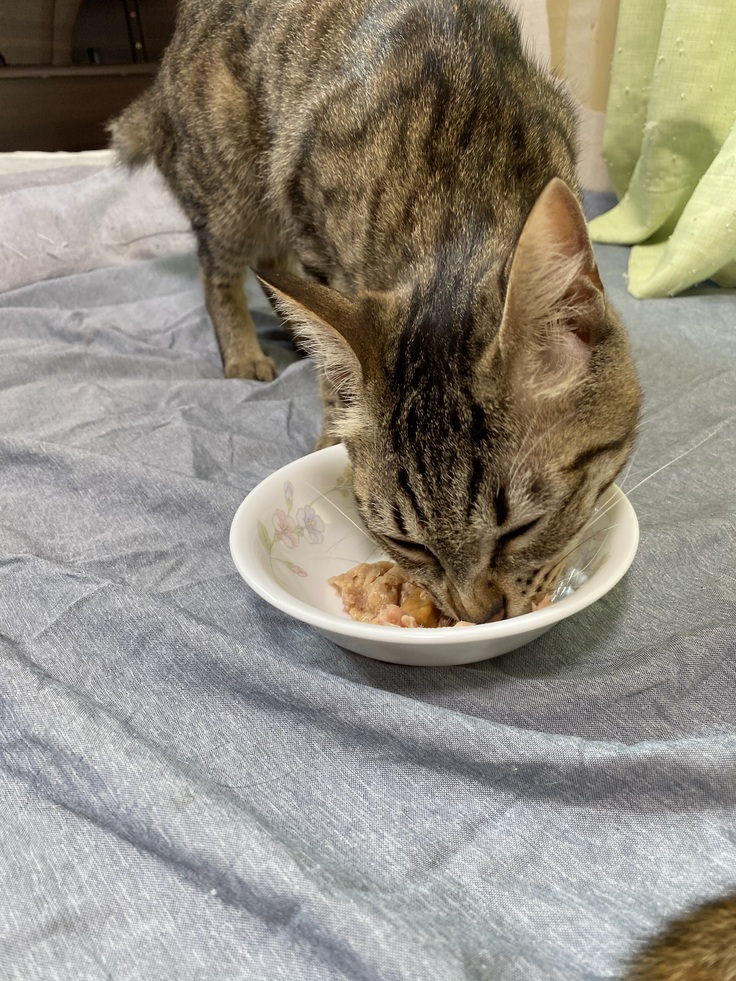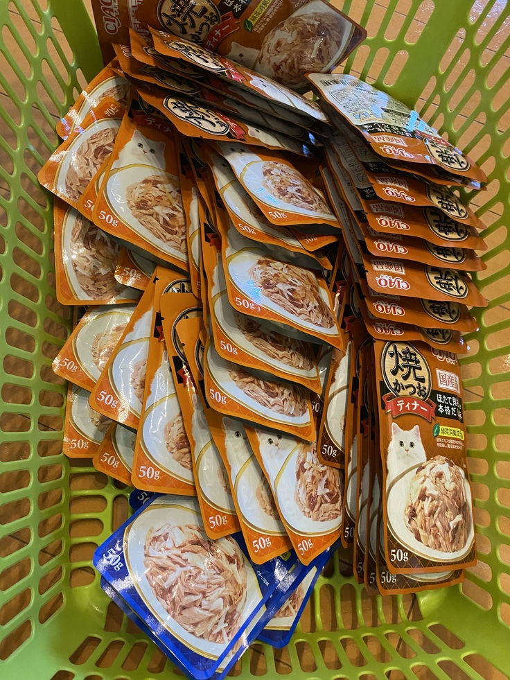 これから外出するので、早めの夕ごはんと、投薬。副作用なく、もりもり、食べてくれました。ここちゃんは、今、下の写真の餌がお気に入り、というか、他のウェットは食べません。安売りの日に、大量買い占めに行ってきました!
