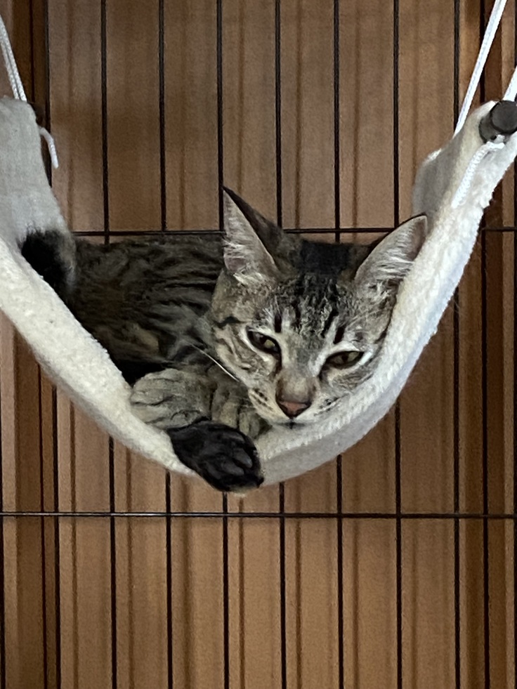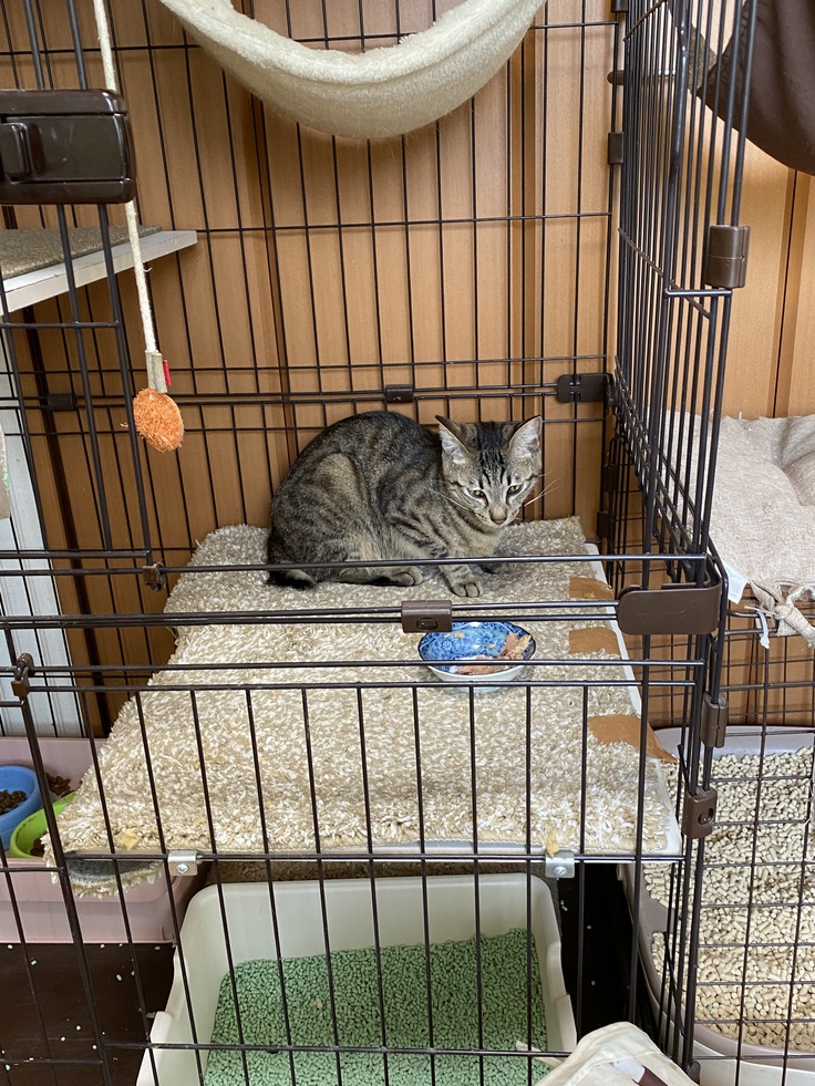 昨日、シクロホスファミドの投薬をしたここちゃん。今日は、元気がありません。大好きなウェットも少ししか食べず、動きたくないという感じです。気持ちが悪いのかな。かわいそうです。抗がん剤治療の後は、排泄物に発癌性がある物質が含まれているので、24時間、ケージの中に隔離していますが、その扉を開けても、出てこようとしません。辛いんだろうな。かわいそうです。早く副作用がなくなることを願います。