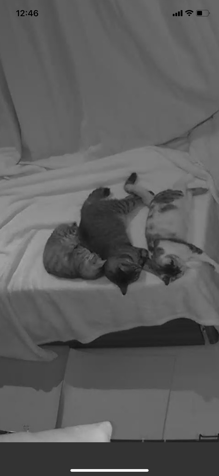 ここちゃん、ミルク、ぶん太です。さちは、一人で離れたところで寝ることが多いです。仲はよいですが、性格ですね。この写真もそうですが、普段の様子を見ていても、本当になかよし兄弟です。ずっと、みんなで幸せに過ごしてほしいです。奇跡よ、おこれーーー!