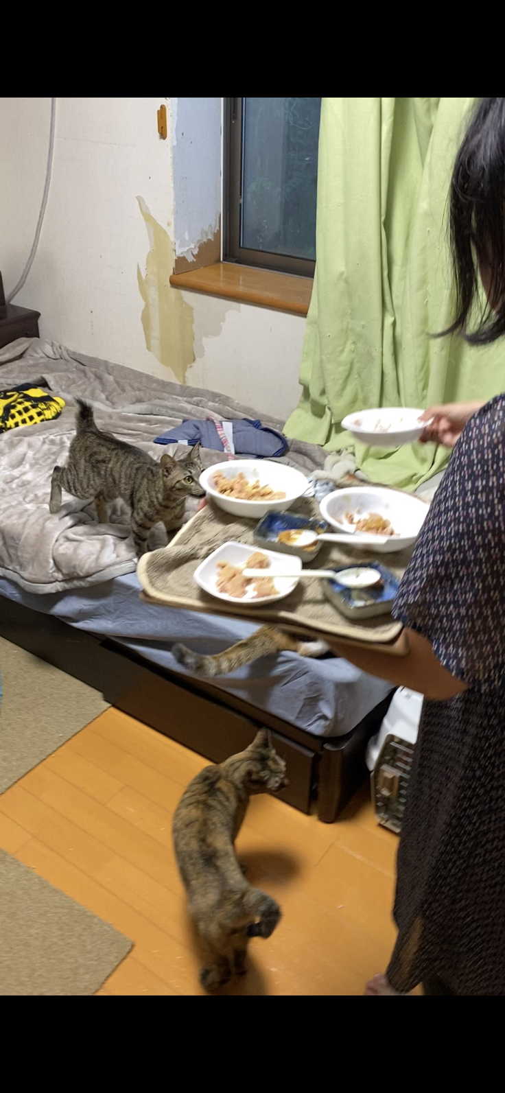 夕ごはんも、待ち侘びていた様子。左上がここちゃん。