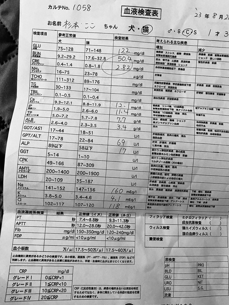 慢性腎不全が嘘のように改善され、基準値に戻ると信じます!主治医が予想しないことを起こしてるここちゃんですから、奇跡だって起きると信じます!
