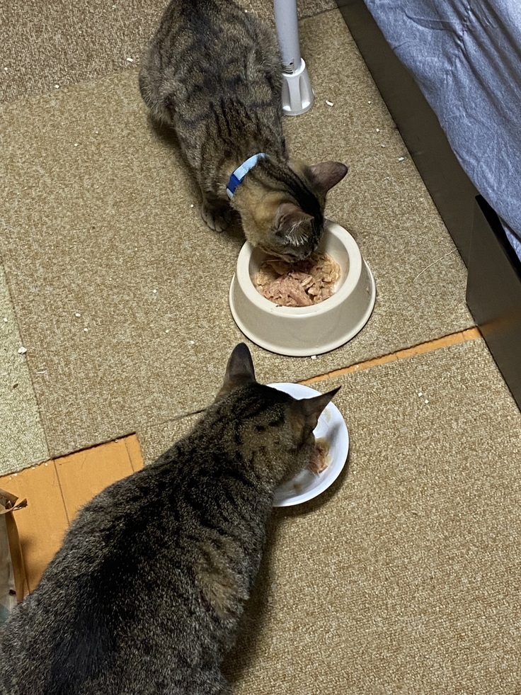 そこで、食べていいギリギリの時間まで食べさせてあげようと、9時にミャウミャウ(パウチ)をあげました。あっという間に1袋食べてしまいました!ここちゃん、これで明日の昼近くまでがまんです😣