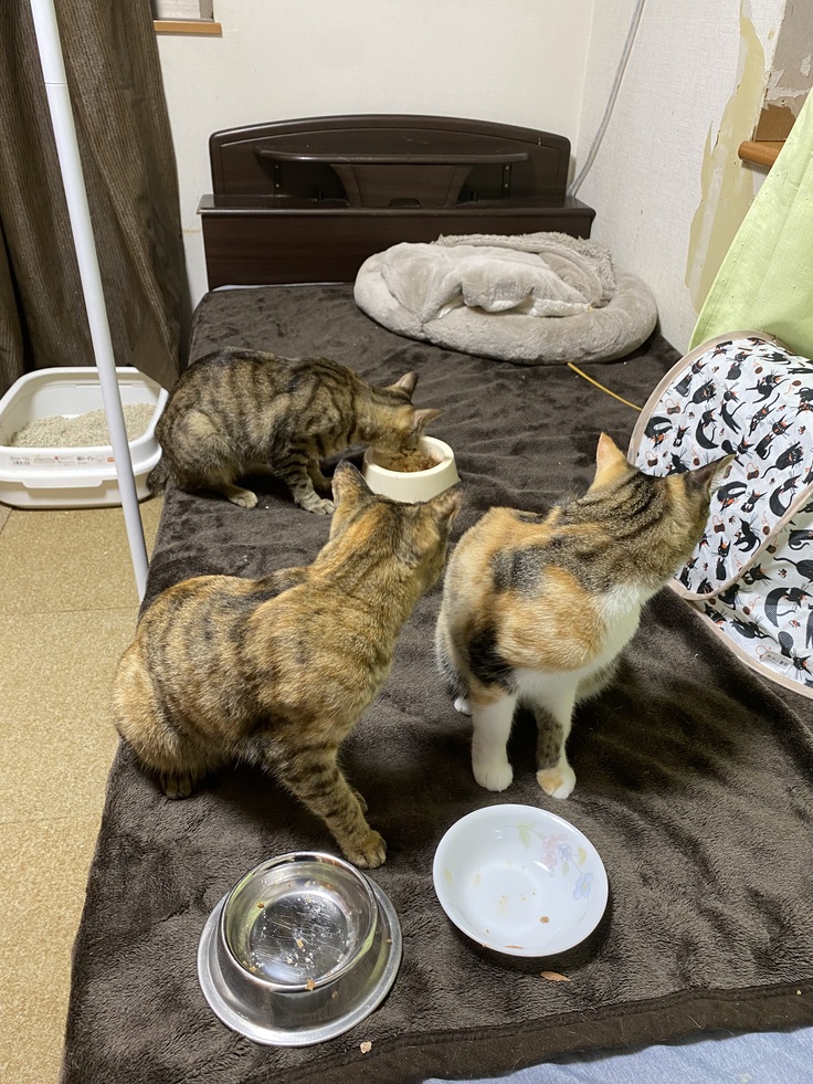 今朝は事件が!部屋の前のゲートを閉め忘れ、全員が脱走‼️ここちゃん、ぶん太は、すぐに確保できました。ミルクとさちが逃げ込んだ先には、みいこがいて、鉢合わせ!ケンカにでもなって噛みついてしまったら白血病が移ってしまいます!焦りました!しかし、みいこが逃げてくれてほっ。その後、ミルクがベッドの下からなかなか出てこず、点滴前の貴重な時間が奪われてしまいました。