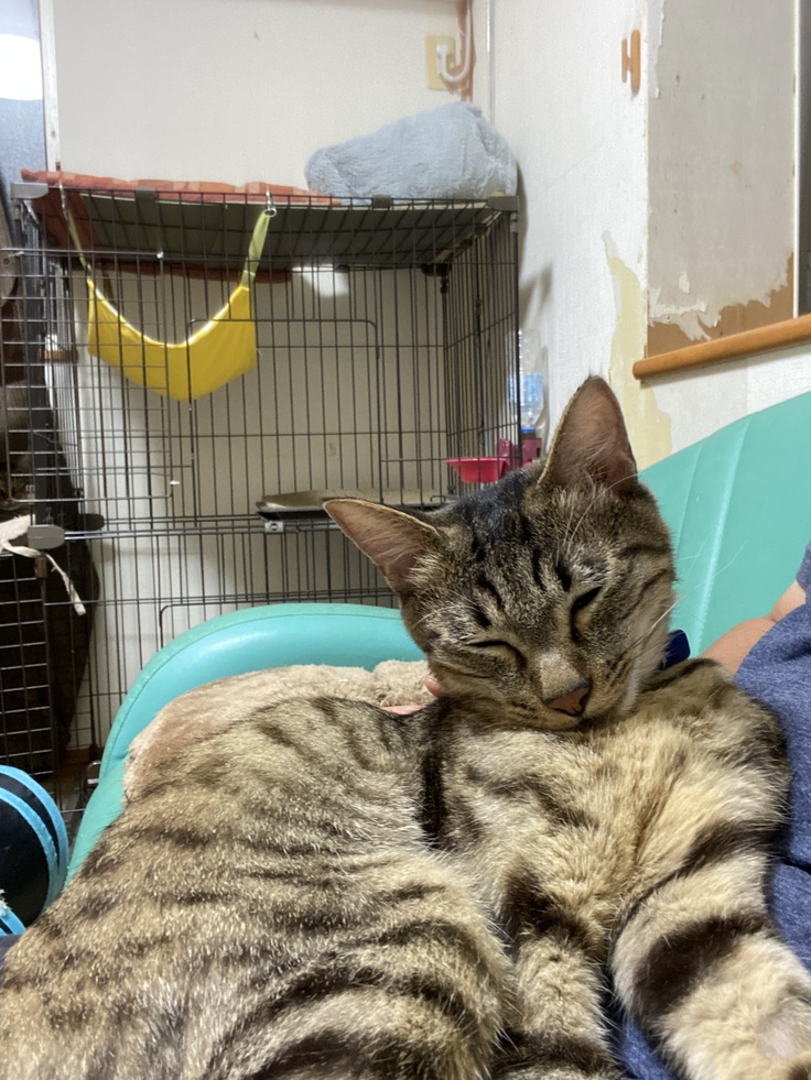 ここちゃん、今日も元気にいつも通りの1日を過ごし、今は夕ごはん後のまったりタイムです。でも、ここちゃんは、窓の外を眺めた後、私のところには来ず、ケージの上で寝てしまいました。いつもは来るのに来ないと心配になります。昼間も、呼吸数は大丈夫なのですが、兄弟に比べて明らかに呼吸が深く、心配になってしまいました。今も、大きく深い呼吸をしています。回数は、26回ぐらいで問題ないのですが。獣医師からは、心配なのは、深さではなく、速さと言われていますが、やはり心配になってしまいます。昼間は、、兄弟たちと寄り添ってほぼ寝ています。夕ごはん後は、他の兄弟たちは起きているのに、ここちゃんは寝ています、、、。かわりにさちがずっとだっこされて離れません。体重測定をするために、さちをおろし、ここちゃんを撫でるとゴロゴロ。ずっとだっこされています。さちに譲ってあげたのかもしれません。