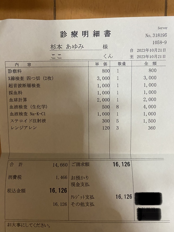 残念なことに、腫瘍は、一週間前より一回り大きくなり、3.8✖️3.7センチでした。そして、とうとう、胸水が滲み出てきてしまいました。昨日気になっていた深い呼吸は、肺が膨らむときに腫瘍にぶつかるので膨らみきれないので努力呼吸になっているのでしょうということでした。ただ、肺も何の問題もなく綺麗だし、気管は圧迫されていないので、ここちゃんは苦しくはなく、違和感があるくらいでは?とのことです。ここちゃんを見ていても、本当に苦しそうな様子はなく、喜んで食べて、兄弟たちとまどろんだり寝たりしています。