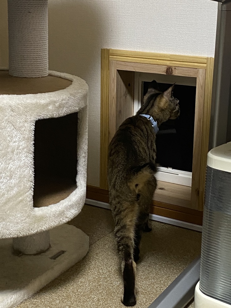 2つ目は、2つ目のねこ部屋ができたことです。4兄弟は、他のねこと接触させられないので、4畳半の部屋に隔離していました。好奇心旺盛、元気いっぱいの一歳児です。かわいそうすぎます。そこで、壁に穴を開けて、二つの部屋を行き来できるようにしました。
