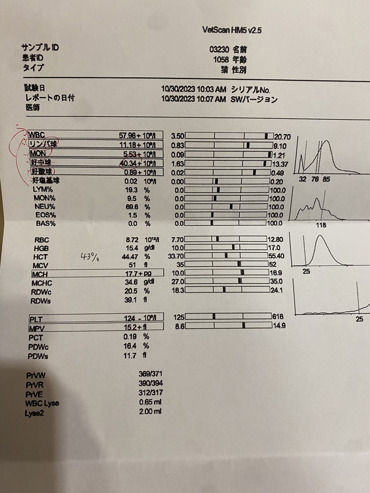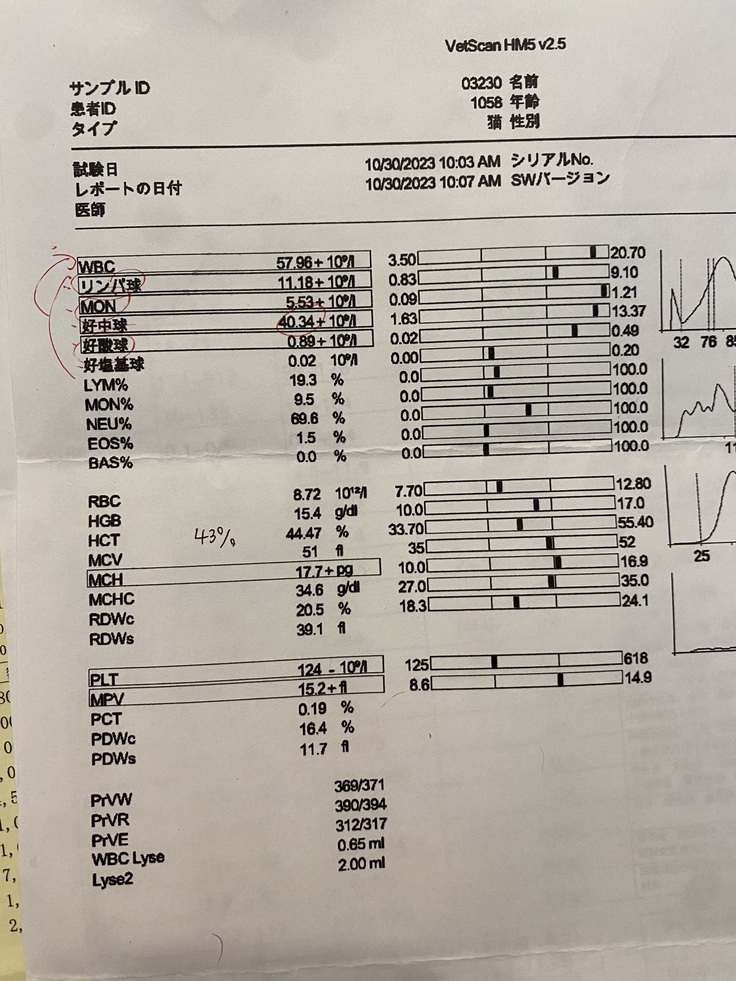 問題なのは、上から6つ全ての白血球の数。一週間前から全て増えています。↓先週の結果です。