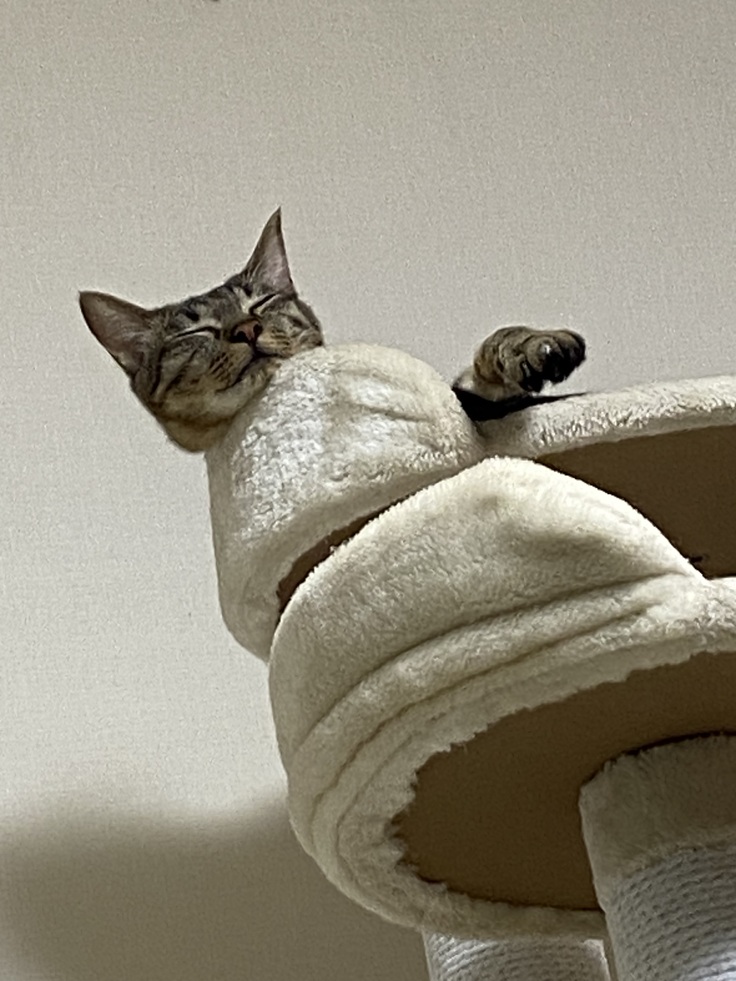 夕ごはんは、飛びついた割に1袋。呼吸数が、16時に33回だったし、焦り、他の餌をあげてみました。嬉しそうに結構食べました。毛繕いをしたりキャットタワーに飛び乗ったりしていて顔つきは元気ですが、呼吸が速く心配。寝ている時の呼吸を測りたいので、ねこ部屋でじっと待っています。速いのが続くようなら酸素室に入れようと準備をしました。怖いです。胸水、たまっています。きっと。