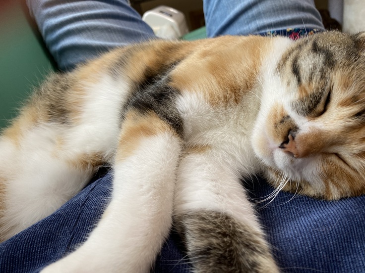 今日は、一日中,ねこ部屋にいました。みんなずーっと気持ちよさそうに昼寝をしていました。いつもは朝夕2回の世話だけで、こんなに長くいることがないので、ミルクは、ずーっとくっついていました。昨日、病院から帰ってきてからここちゃんが元気なくキャットタワーの前から動かないのを心配してなのか、寝ないでここちゃんを見守るミルクが,見守りカメラに映っていました。そして、ここちゃんが,トイレのために起き上がると,慌てて近くに駆け寄ったり,,,。普段も,私がここちゃんの世話をしているのを遠くから、寂しそうに見つめています。本当は自分が甘えたいのに。ミルクは,全てわかっている気がします。そして、今は、ここちゃんが穏やかに昼寝をしているので,安心して,そしてここちゃんに遠慮することなく私を独占できます!健気でかわいいです。