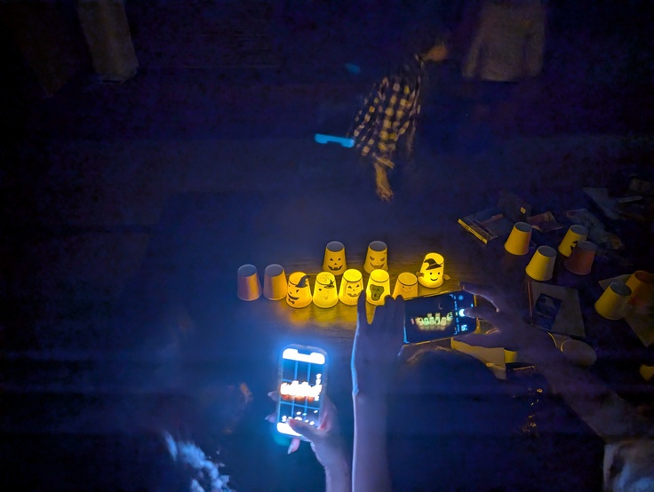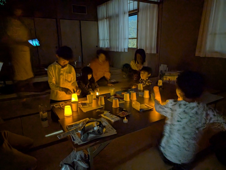 紙コップを使ってランタンを作りました。100円ショップで売っているライトを使うので、火を使わず安全に楽しめます。