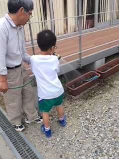 子ども達は、朝顔を植えた後の水やりも手伝ってくれています。