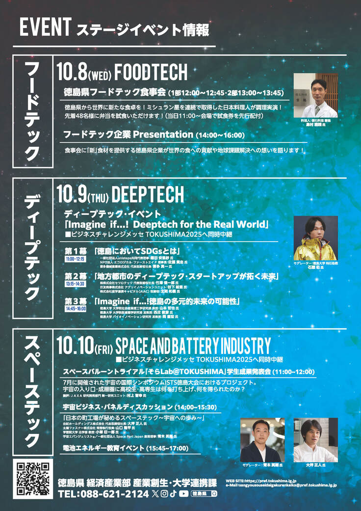 徳島県企業の食やテクノロジーに関する物販・試飲試食・展示が行われる