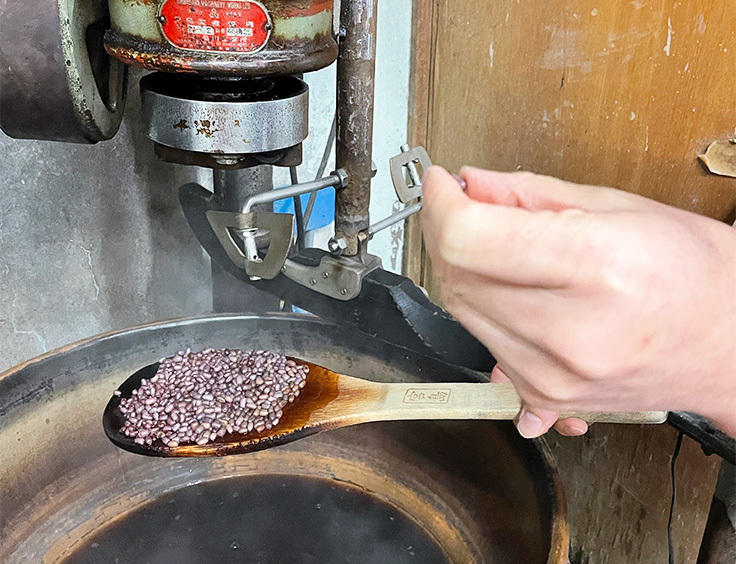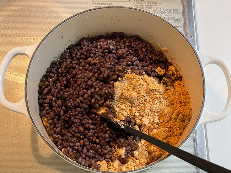 この小豆と粗糖で粒あんをつくってみると、豆の風味がしっかりと濃く出て、とても豊かな味わいになりました。粗糖や黒糖のコクのある甘さにも負けずに豆の風味が際立つ、それが鹿児島が育んできた地小豆なのでした。