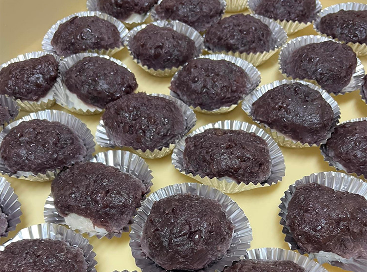 和菓子店の老舗『薩摩菓子所 富久屋』さんは、弊社工房での初めての製餡に駆けつけてサポートしてくださいました。また、お彼岸のおはぎに、かのや姫小豆の粒あんを採用してくださいました。これは、地元の皆様に大好評でした。