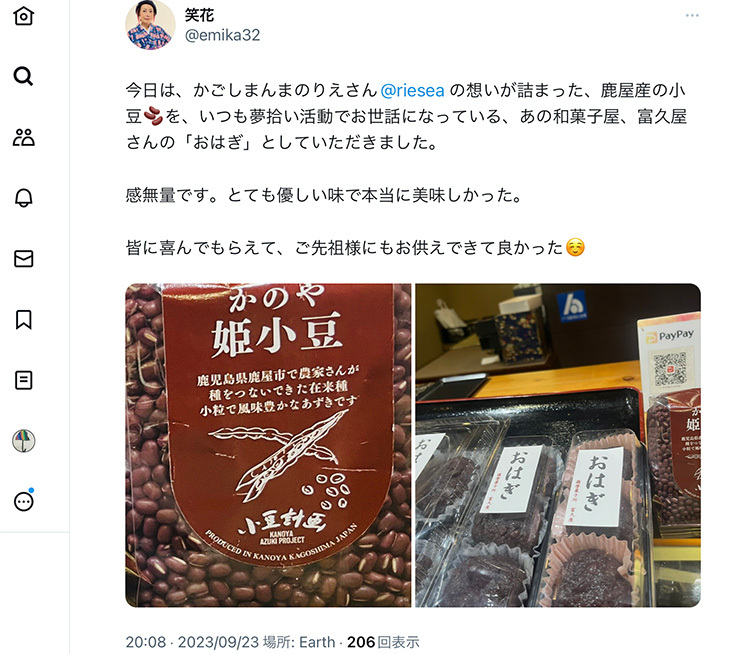 ▼おはぎを食べてくださった方々が、嬉しいお声をSNSにあげてくださいました。