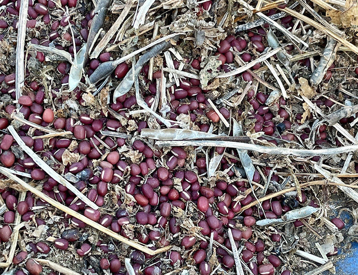 叩かれて割れた鞘から出てきた小豆。昔ながらの小豆生産が、そこに存在していました。