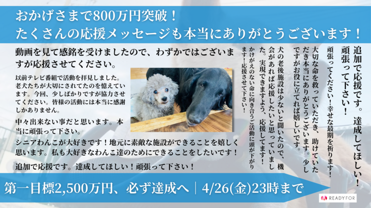 夢の実現に向けて、残り25日で1700万と課題は大きく、まだまだ皆様のご協力を必要としています。