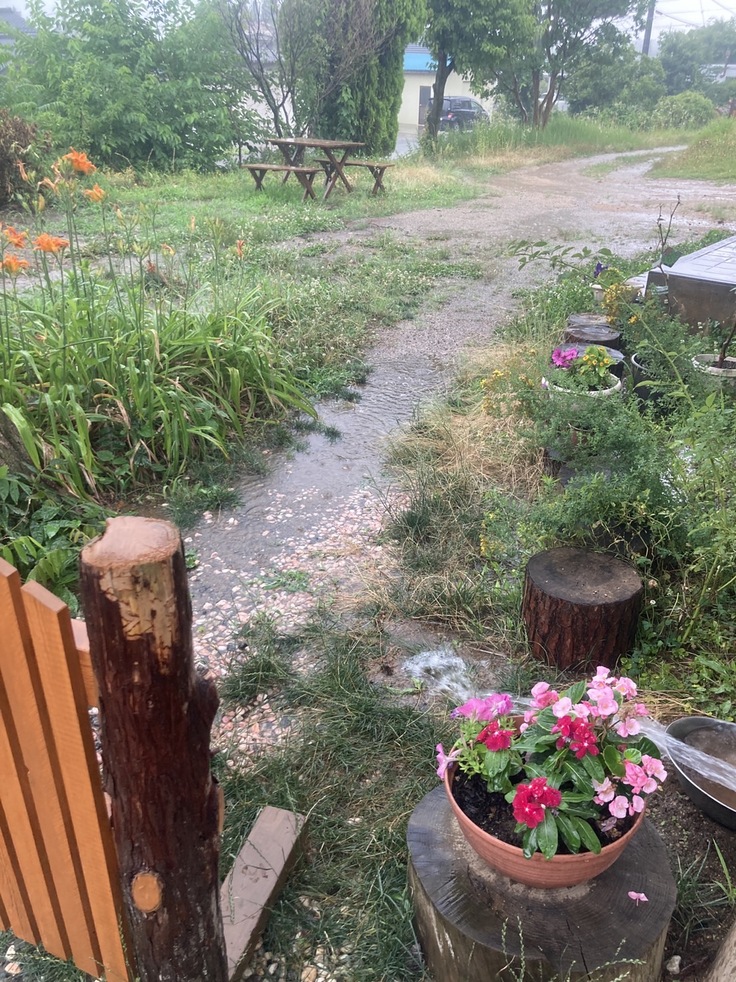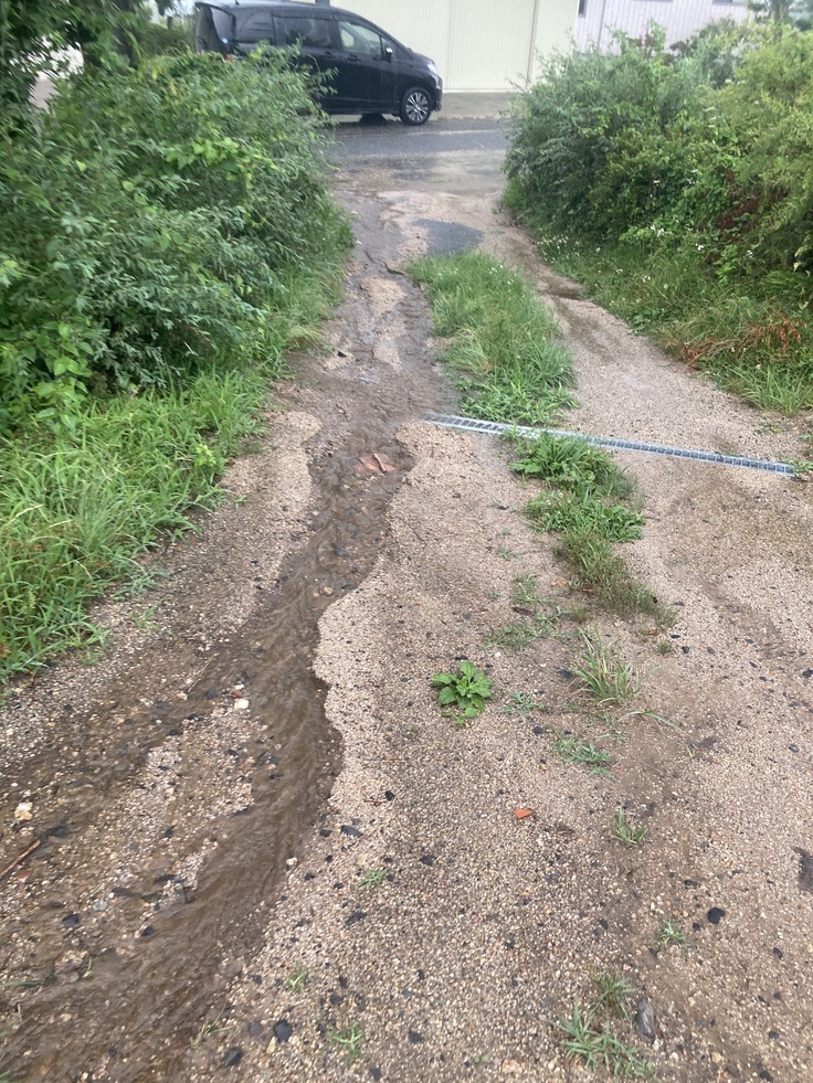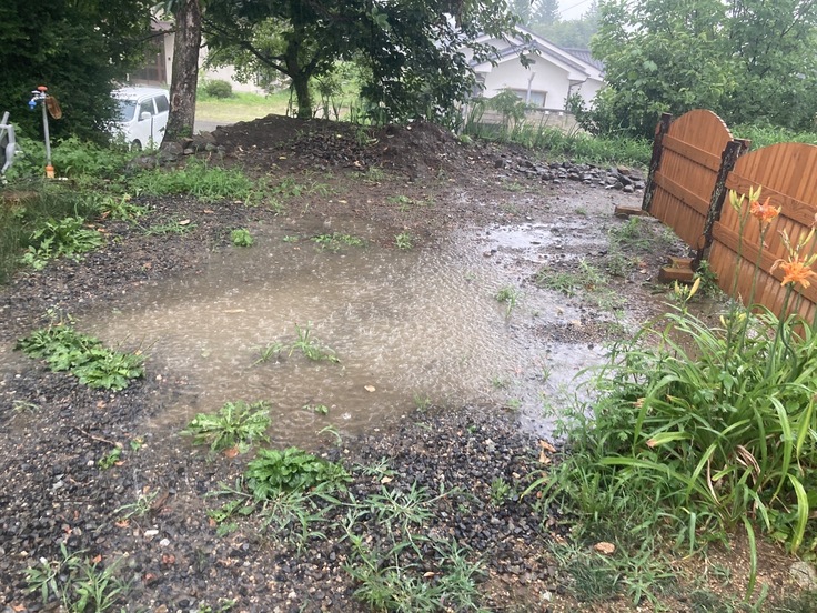 雨が降ると、水溜りが至る所に…(土も削れています)