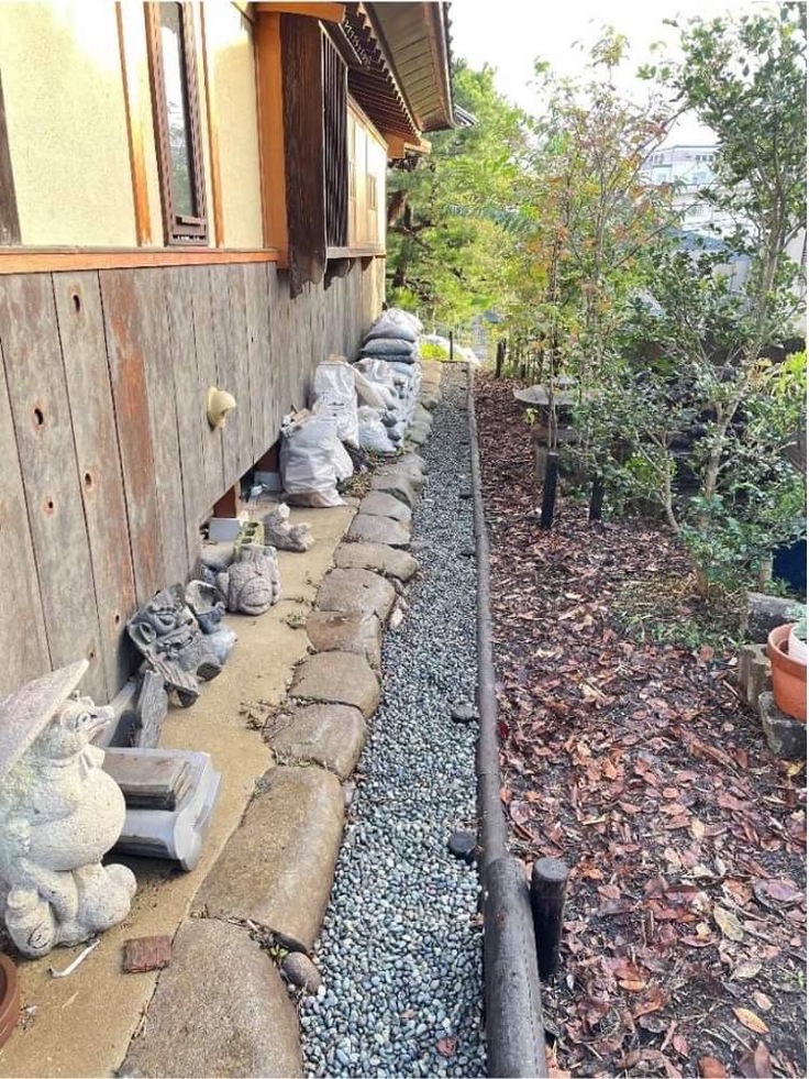 ⇒炭・落ち葉・砂利を用いて雨水の自然な吸収を促す