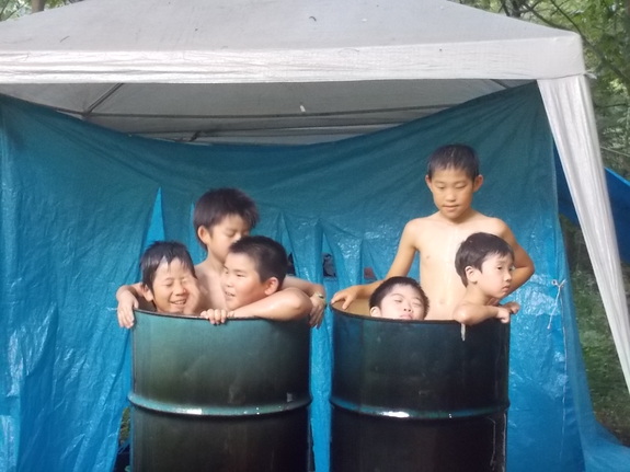 (ドラム缶のお風呂!)
