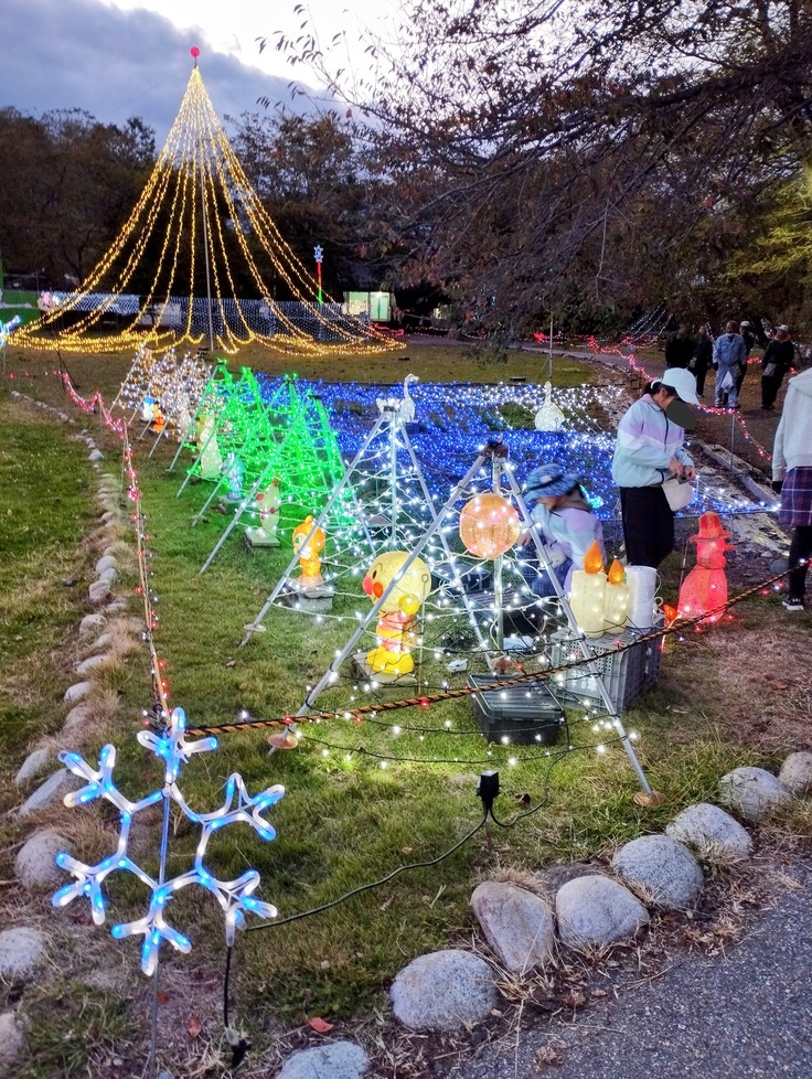 点灯後は保育園や低学年の子供たちが大喜びしてキャラクターの前にやってきます。