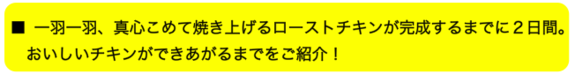 仕込みから焼き上げ、パッキング、発送までのすべての工程を私一人でこなしています。一人ですべてを行うことは簡単なことではありませんが、一羽一羽に私のチキンへの情熱を込めて作らせていただいており、どのチキンも間違いなく美味しいと断言できる自信があります。