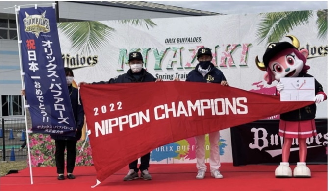 2022年2月のキャンプでは、地元主催で日本一祈願の絵馬を書くイベントが実施され、参加されたファンの皆さんや地元小学生をはじめとする地域の方々の願いが叶い、2022年シーズン、ついにオリックス・バファローズが念願の日本シリーズ優勝を果たしました!!