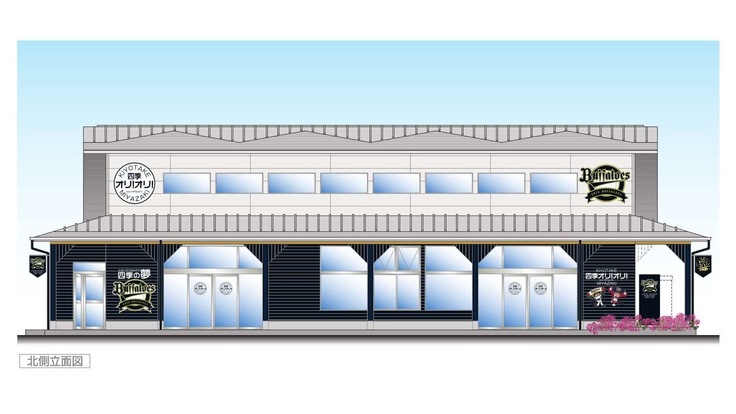 四季の夢をオリックスカラーに塗装することで、四季オリオリの「人」・「もの」・「情報」が集まる「まちのランドマーク」として認知していただき、”バファローズタウン清武”にお越しいただくファンの皆さまにとっても楽しみな場所となる未来を思い描いています。