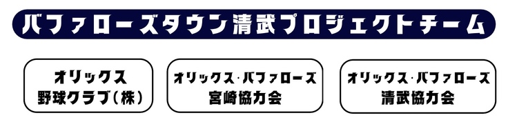 私たちは、オリックス・バファローズの春季キャンプ地”みやざき”の「清武(きよたけ)地域」をバファローズタウンにすることを目指して立ち上がった『バファローズタウン清武プロジェクトチーム』です。