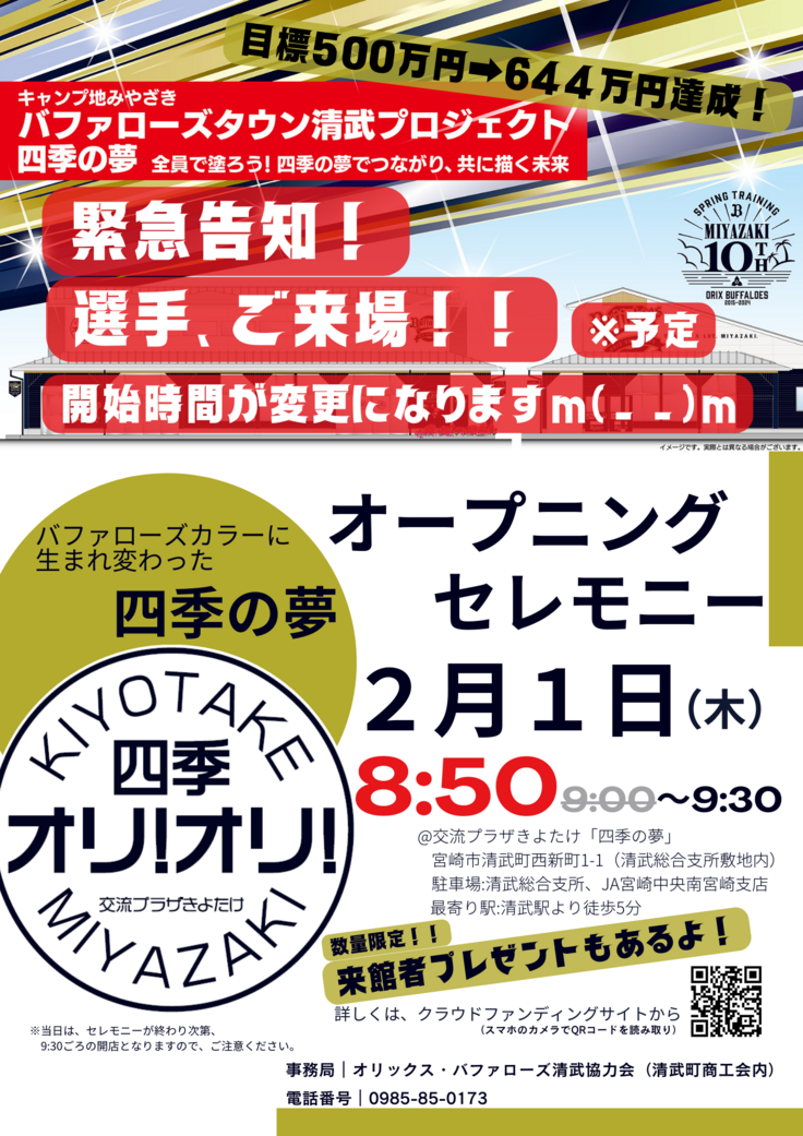 緊急告知!オープニングセレモニーに、選手が来場!! ※開始時刻が変わります