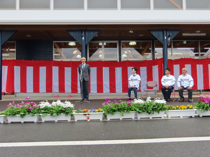 雨が大変心配でしたが、降られることもなく、県内外から多くのファンの方にお越しいただき約300名の皆さまと共にお祝いすることができました。