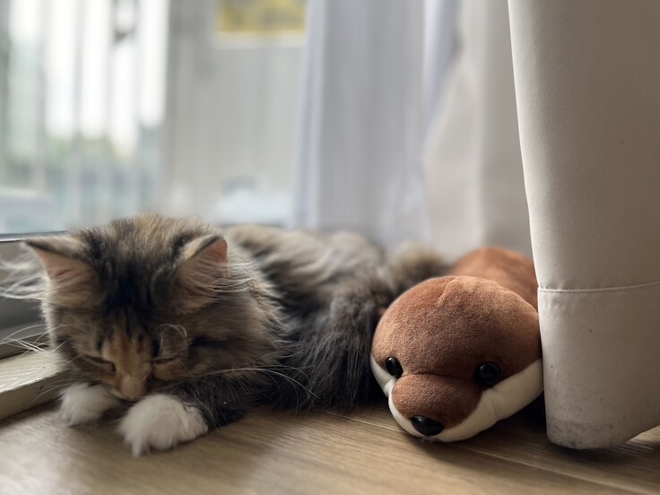 現在0歳6ヵ月のサイベリアンの子猫ベールと二人で暮らしております。