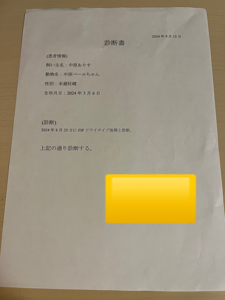(ベールはドライタイプでFIP診断と診断していただくまで時間がかかってしまったため、ベールにみられた症状なども詳しくお伝えできたらと思っております。)