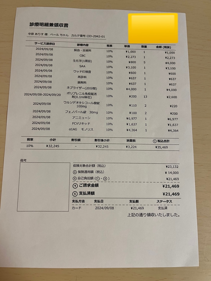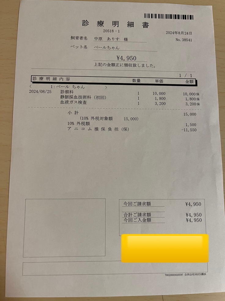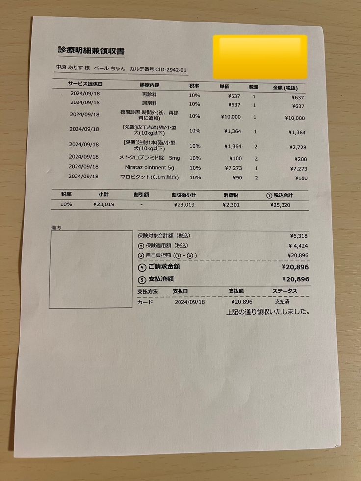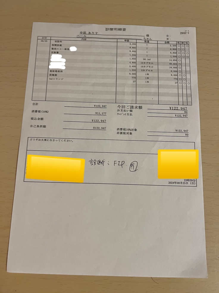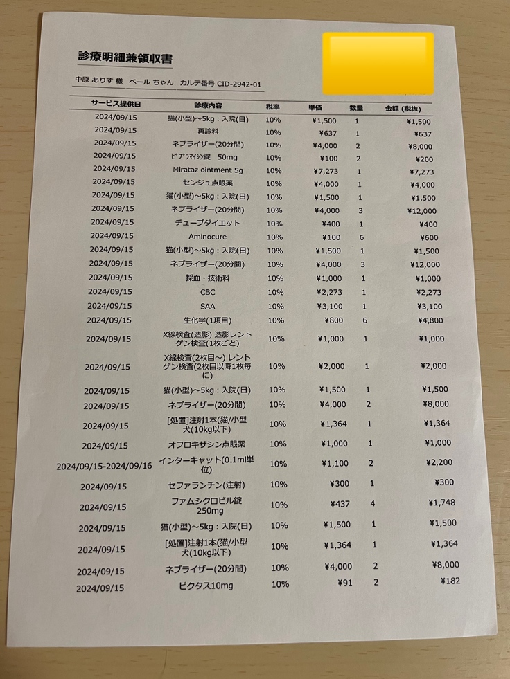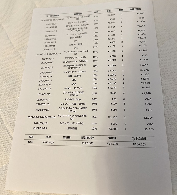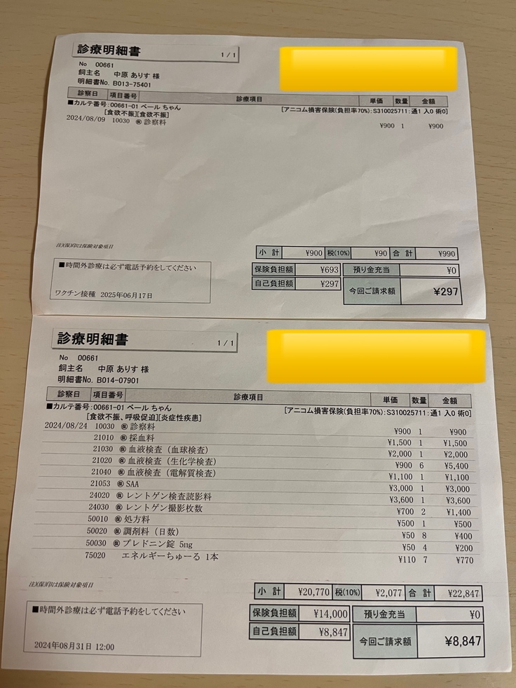 そして検査代や原因不明の炎症治療のための薬代が別途かかってきております。