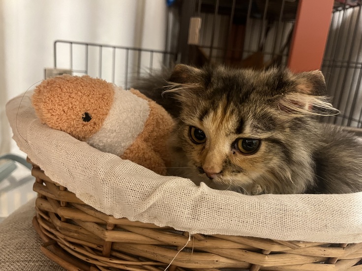 (購入してから2ヶ月インテリア化されてたカゴに入ってくれた記念の写真です)