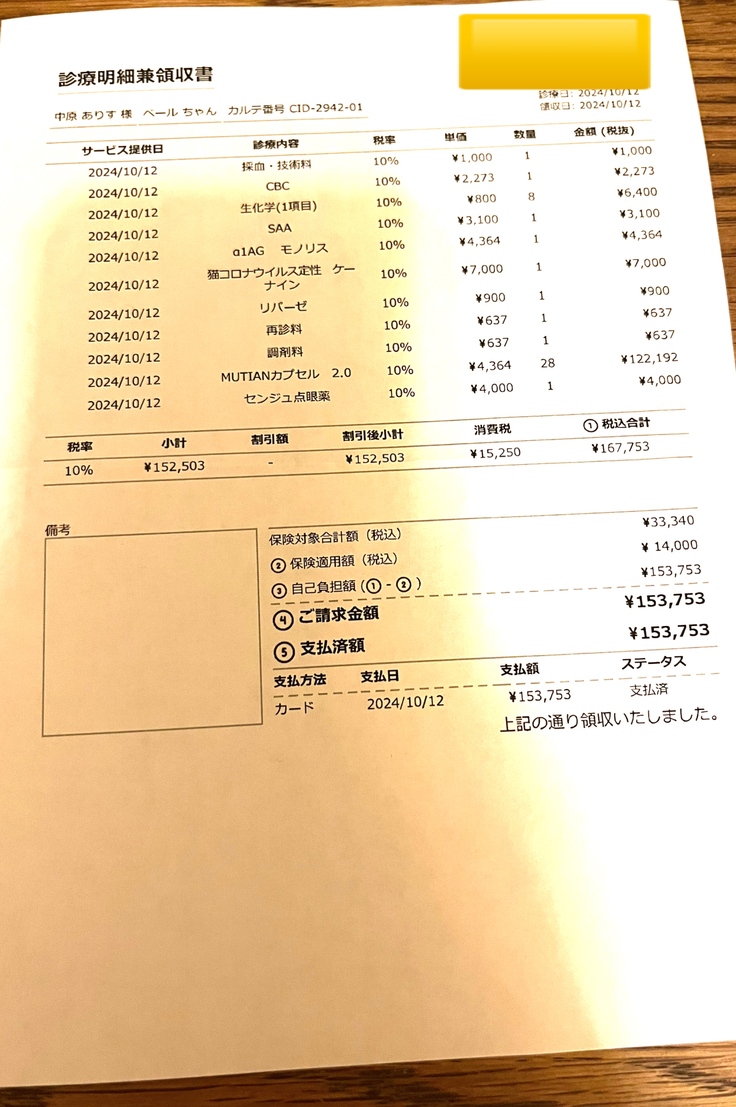 ここ数日の体調不良の旨を伝え検査をしていただきましたが、血液検査の結果も良く体温も平常でした!