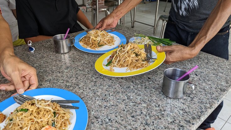 急いでランチ(リターンにもあるパッミーコラート)をとりながら、事前の情報交換。クラファンの支援のお礼も!