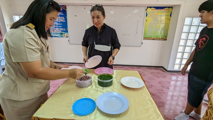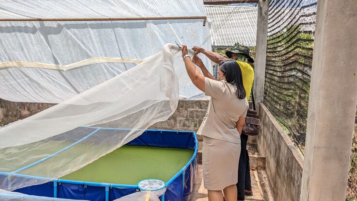 カイナムはミジンコウキクサという浮き草の一種。世界最小の種子植物だそうで、東北タイと北タイの一部でしか生産されていないとのこと。スーパーフードとしても各国でも注目されはじめており、ここでは生産研究を行ったり、町おこしの起爆剤になる可能性を秘めた農産物とのことで、ご案内いただきました。