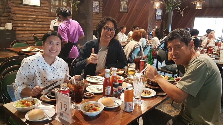 帰り道にはチョクチャイファームに立ち寄って、いつもの感謝も兼ねて二人にステーキをご馳走しました。たまには自分にもご褒美、誕生日くらいはいいでしょう😋