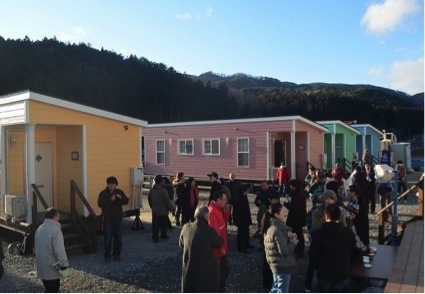 東日本大震災の一ヶ月後に、友人の緒方さんから仮設住宅の遅れが見ていられないと相談を受け、トレーラーハウスの大量輸入を検討、うごく町づくりのプログラムを企画したことから、宮城県女川町にトレーラーハウス30台で宿泊施設をオープンさせることができました。(2014年現在40台に増設)
