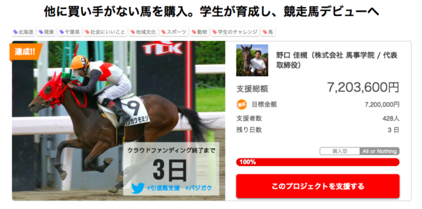 この度、終了3日前の昨日15時に、おかげさまで目標金額720万円を達成することができました。