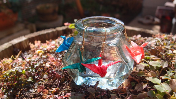 ◆折り鶴ピアス : 赤・青・緑・ピンク