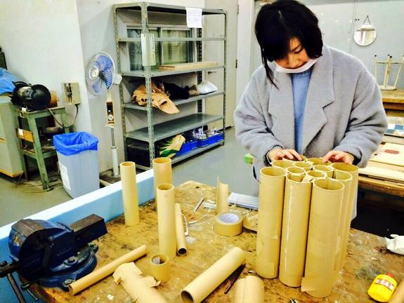 ボール紙の芯が切り株の内構造に利用したりもしています。