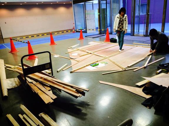 材料は大学の廃材置き場の資材が利用可能なものがあり、