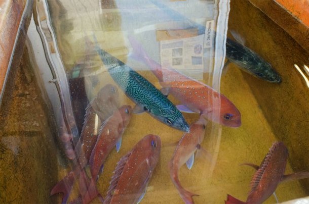 魚はすべて活きた状態で売っています。 魚屋さんには水槽がおかれ、その中で泳いでいる魚を指差して注文します。 とにかく新鮮な魚が食べられます。