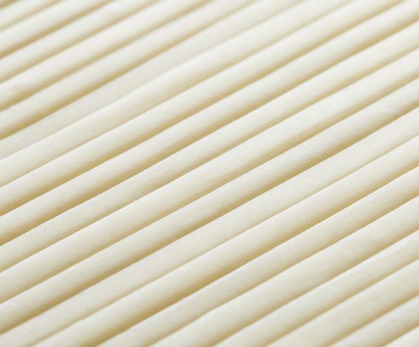 弊社では約3年前よりパスタ製造を行っています。「生パスタを食べたいな」と思って小麦問屋に相談し、試作を始めました。そして、近隣のイタリアンレストランに試作品を持参し、イベント時などにオーダーを頂戴するようになりました。しっかりした太さのパスタですので、ボロネーゼなどしっかりした味のソースで召し上がっていただくのがオススメです。