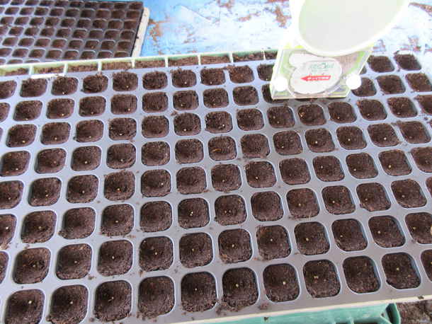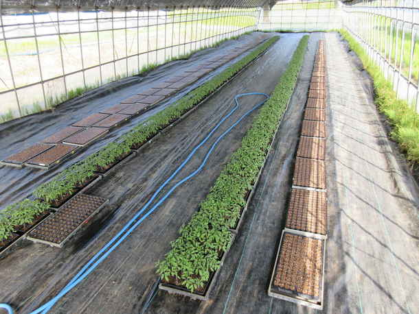 ↑約10000粒まきました(真ん中2列はトマトの苗、両側がえごまです)