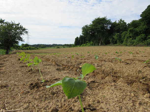 育苗ポットから出た苗たちは、これから畑の養分を吸ってみるみる大きく育っていくと思うと楽しみです♪